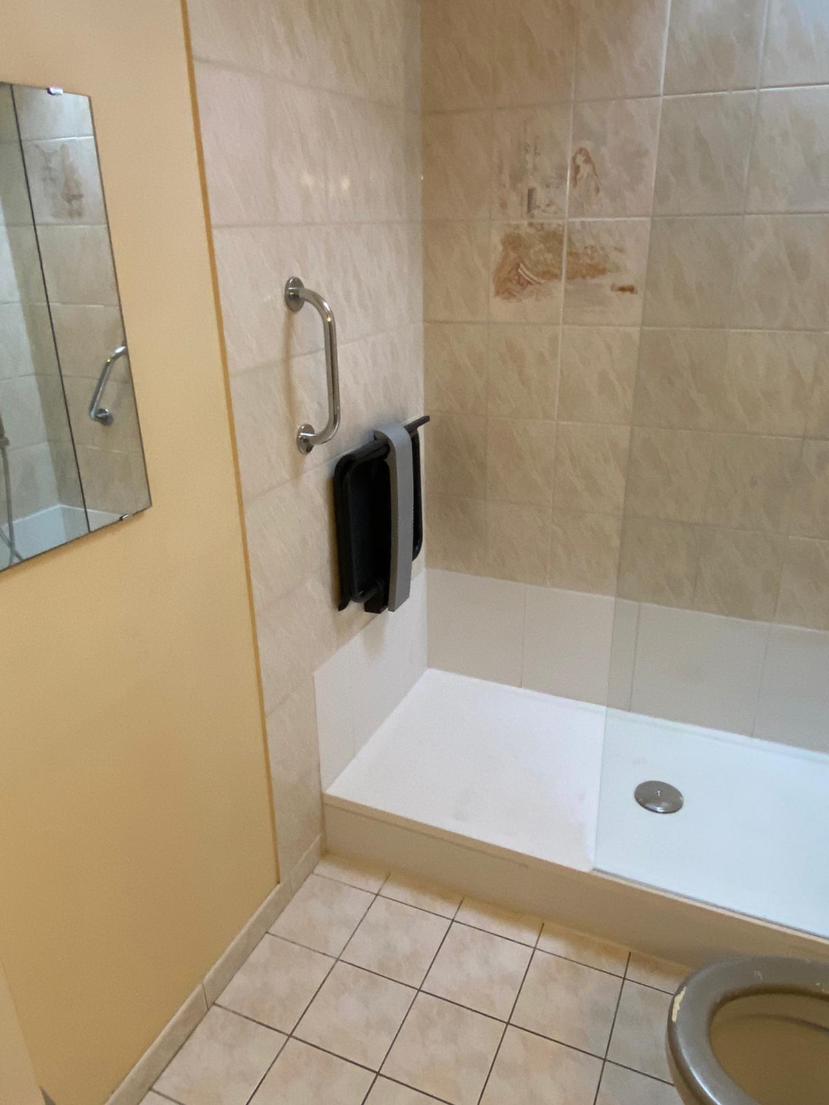 Aménagement salle de bain accessible - Installation douche PMR - Pose de barres d’appui - Adaptation des équipements sanitaires.